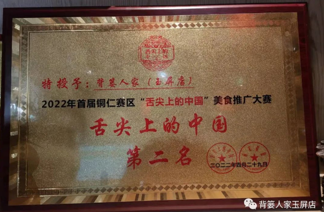 玉屏背簍人家餐廳 參加2022年首屆銅仁賽區(qū)舌尖上的中國美食推廣大賽活動,通過餐廳菜品、環(huán)境、服務(wù)等方面的評選獲得銅仁賽區(qū)第二名! 背簍人家 這一詞已有300年歷......